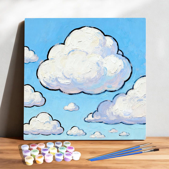 ā˜ļø Puffy Daydream Clouds – Soft Blue Sky Paint by Numbers Kit | PaintEasy