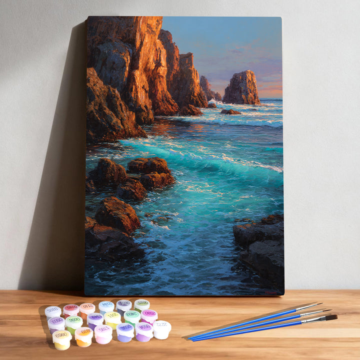 🌊 Turquoise Cliffs – Madagascar Sea Coast Paint by Numbers Kit | Sunset Waves Art | PaintEasy