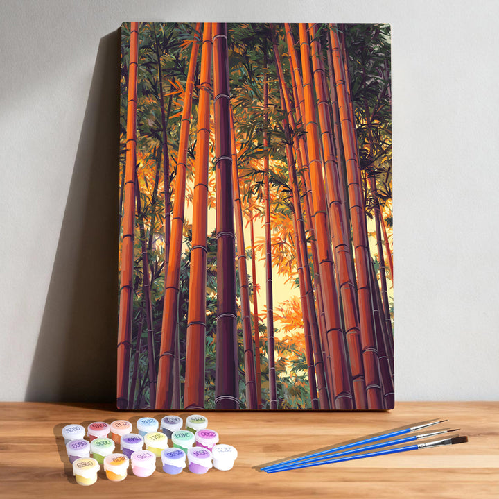 🎋 Arashiyama Bamboo Forest Paint by Numbers Kit | Golden Bamboo Path | PaintEasy