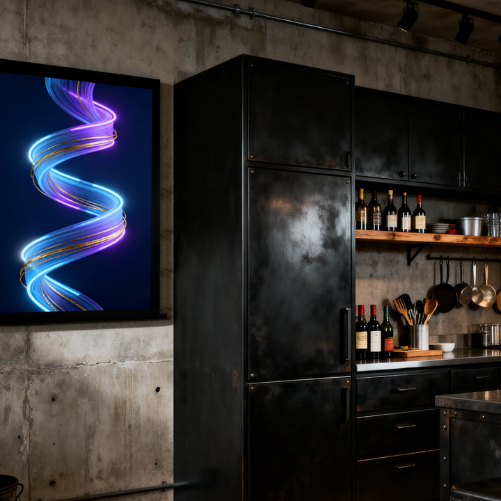● 🌈 Luminous Helix Design – A glowing spiral of blue, violet, and gold energy flow.