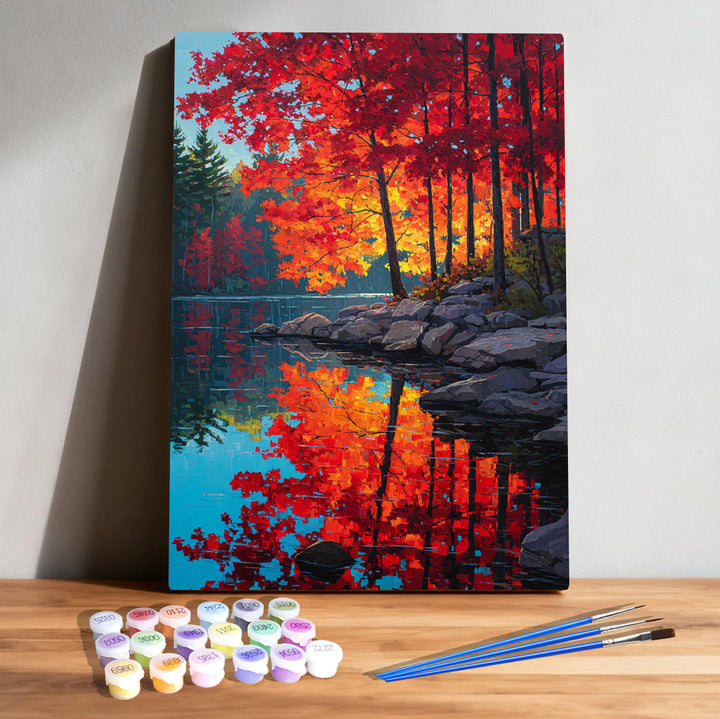 Autumn Maple Forest Paint by Numbers | Vibrant Lakeside Reflection | PaintEasy