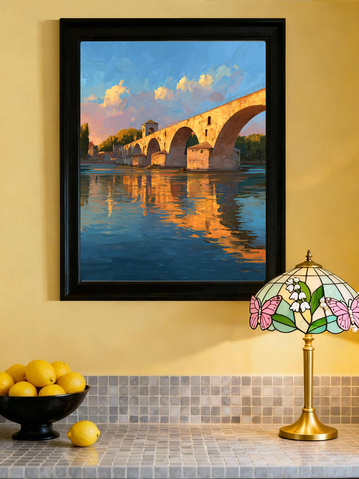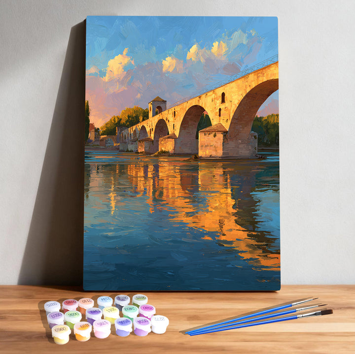 Avignon Pont Saint-Bénézet Paint by Numbers | Sunset France Bridge Landscape Art Kit | PaintEasy