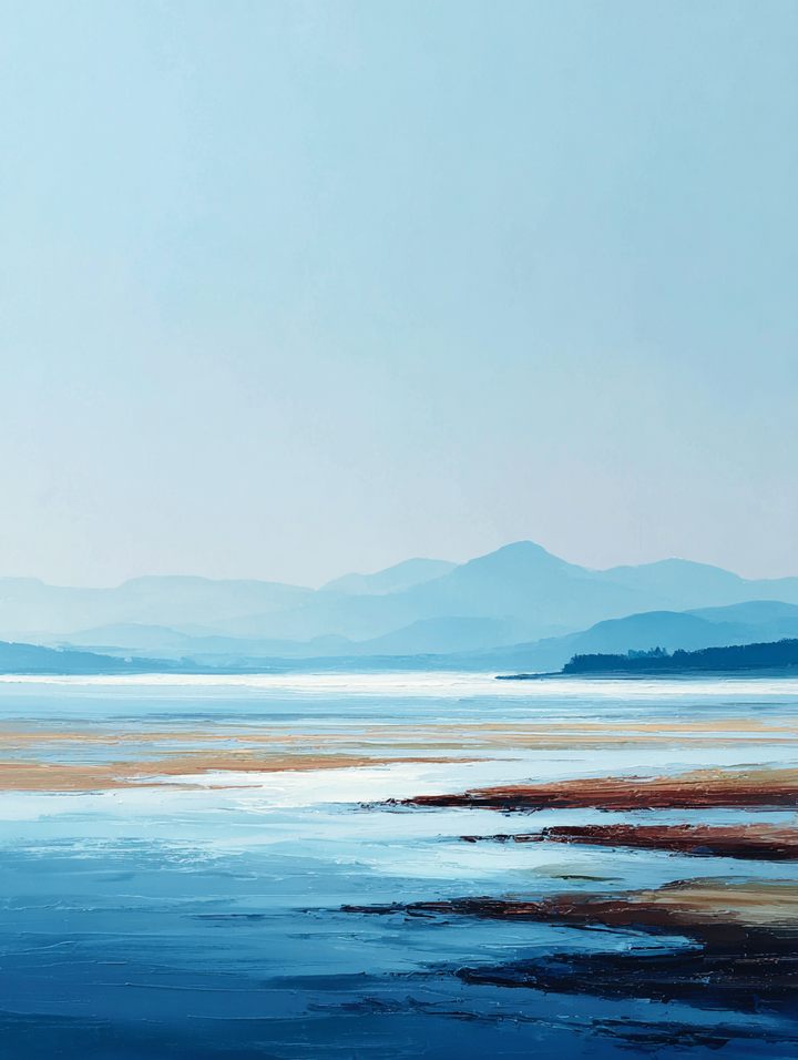 ● 🌊 Minimal Seascape Design – Layers of calm blues and misty silhouettes.
