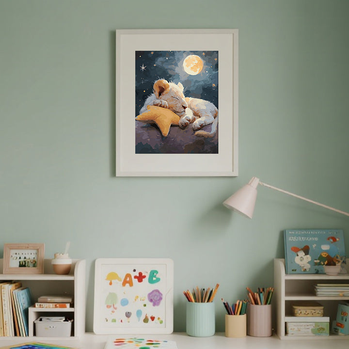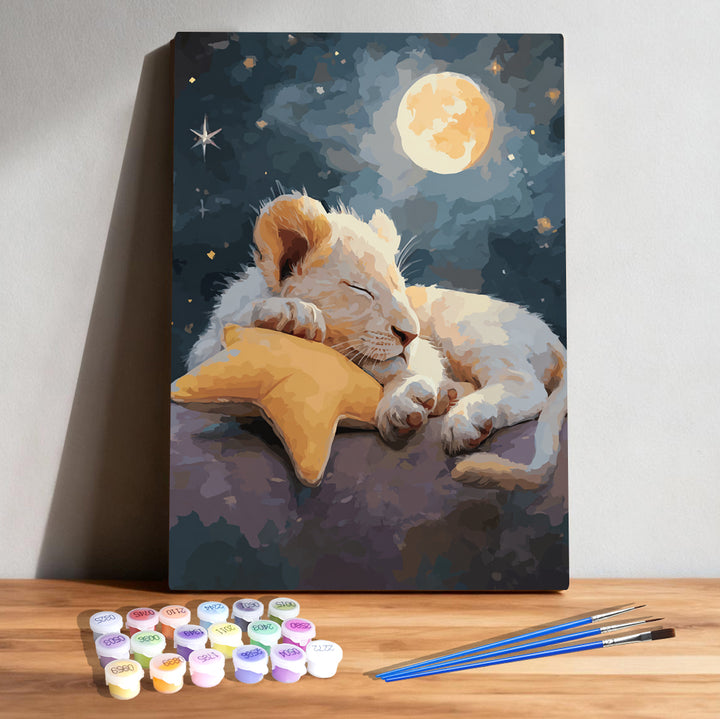 Bedtime Brave Lion – Inspirational Lion Cub Nursery Art | Kids Bedroom Decor | Paint by Numbers Kit | PaintEasy