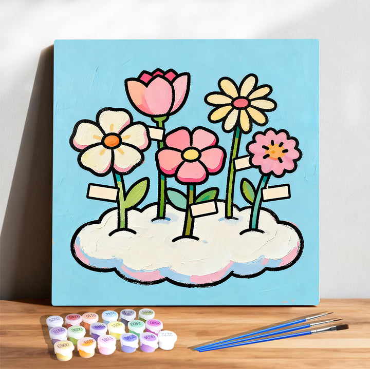 Blooming Cloud Garden – Cute Pastel Flowers Sky Paint by Numbers Kit | PaintEasy