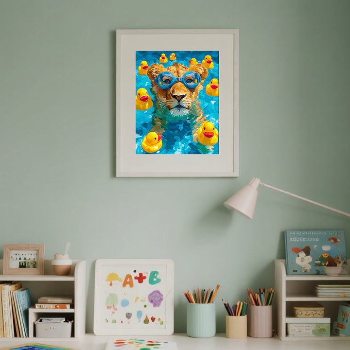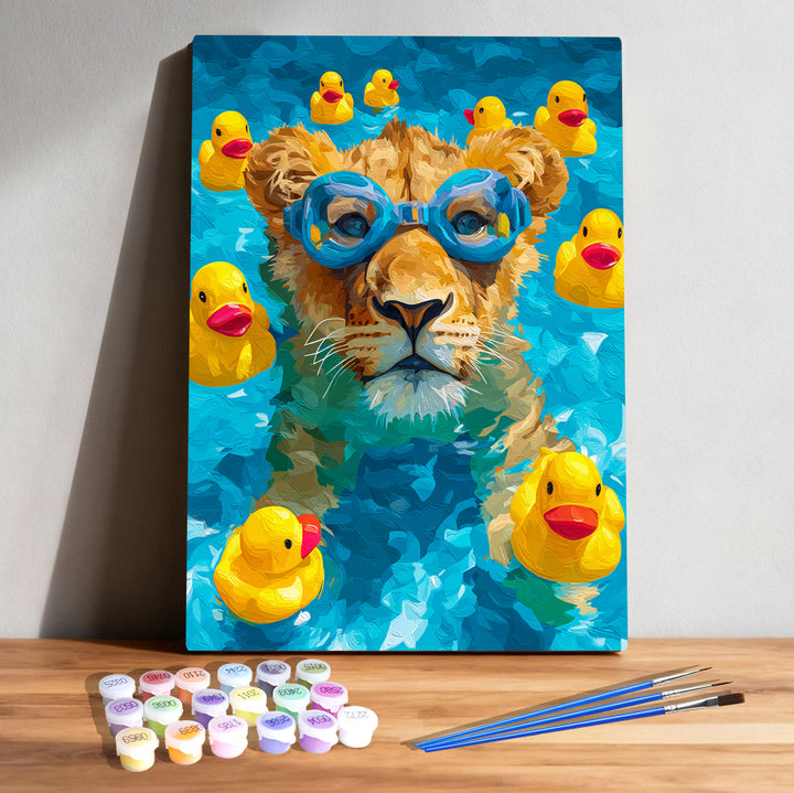 Brave Little Swimmer Lion Paint by Numbers | Lion Cub Swimming Art Kit for Kids | PaintEasy