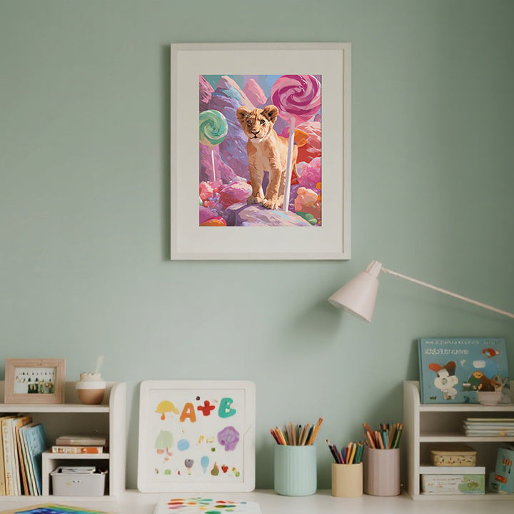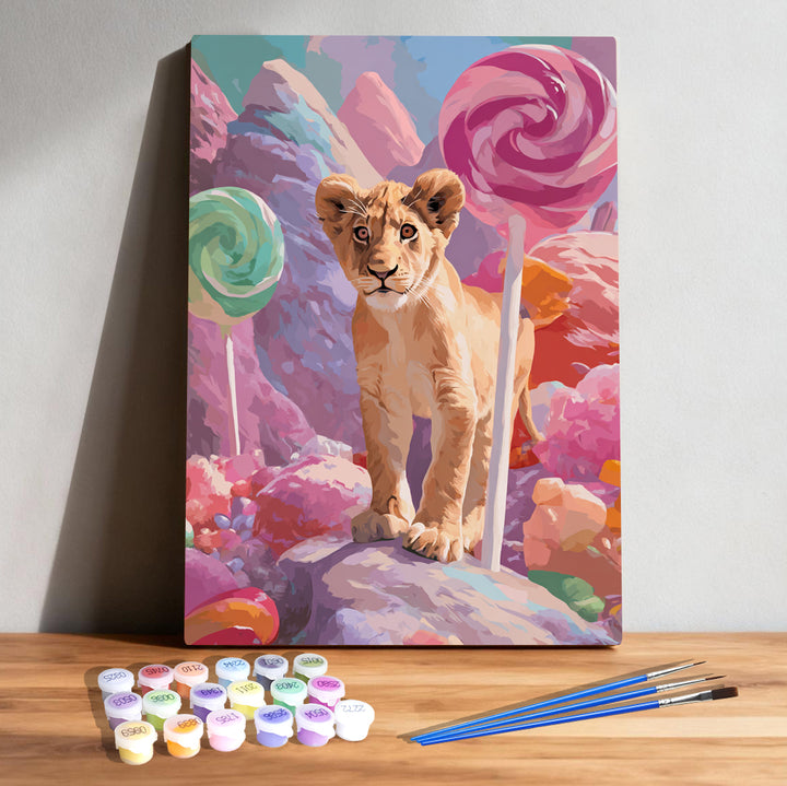 Candy World Lion Wall Art – Vibrant Lion Cub in Candyland DIY Kit | PaintEasy