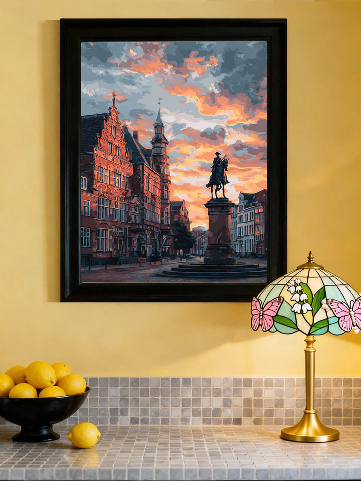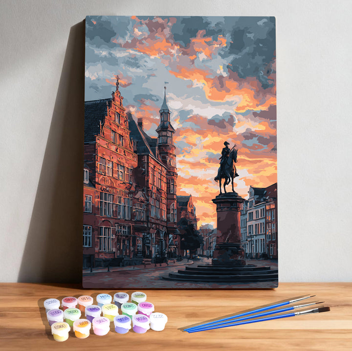 🌆 Bremen Old Town Sunset Paint by Numbers | Historic European Cityscape Art Kit | PaintEasy