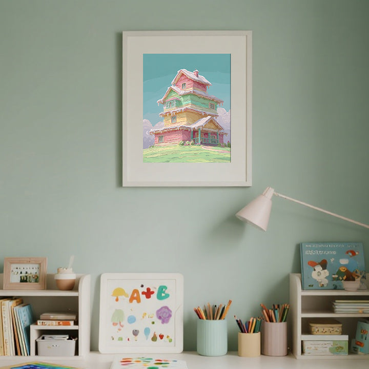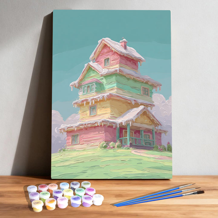 Cake House on a Hill – Kids Paint by Numbers Kit | PaintEasy