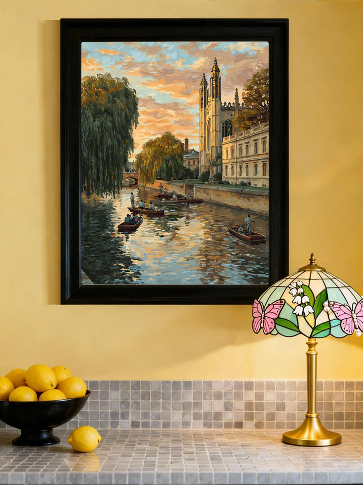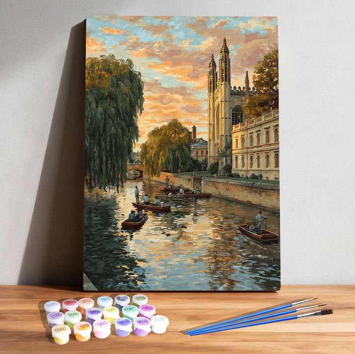 Cambridge Riverside Sunset – UK Paint by Numbers Kit | PaintEasy