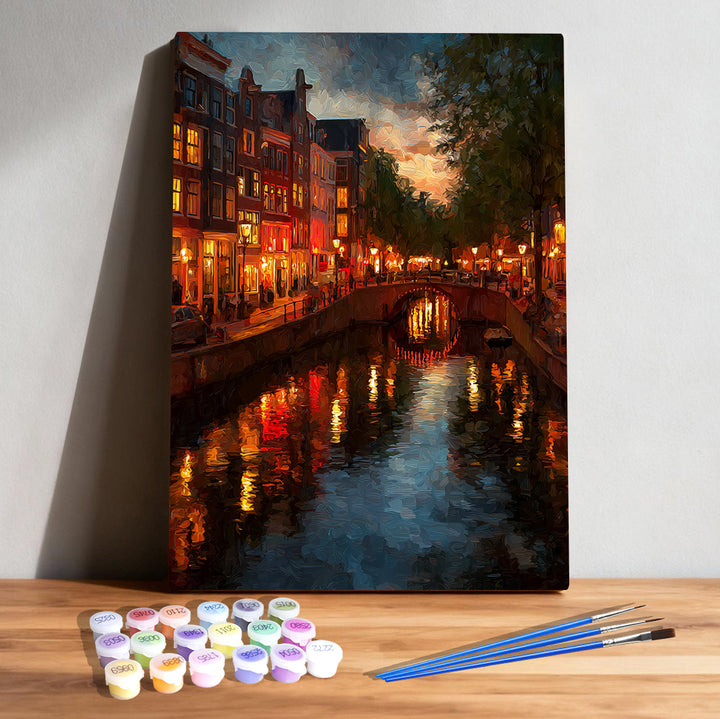Canal Lights at Dusk – Amsterdam Paint by Numbers Kit | PaintEasy