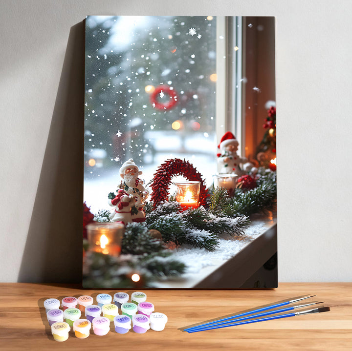 Candle Window Paint by Numbers | Christmas Candlelight & Snow Scene | PaintEasy