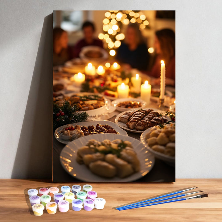 Each brushstroke carries the warmth of togetherness, the scent of festive meals, and the calm of winter nights.
