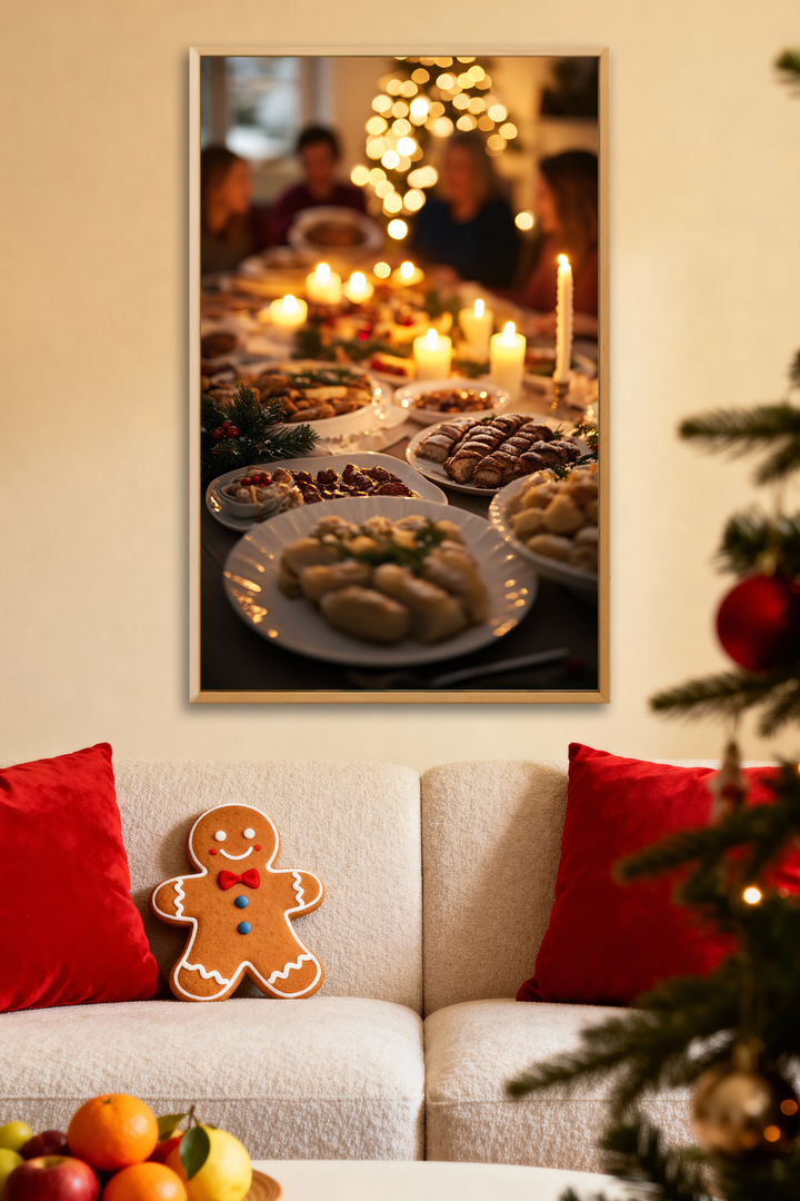 ● 🍽️ Festive Feast Details – Warm dishes, pastries, and shared joy.
