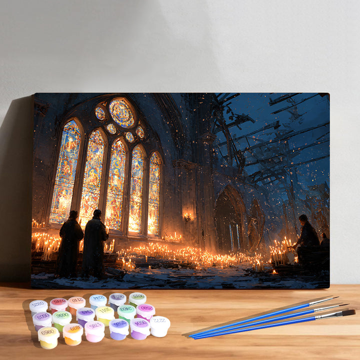 Cathedral of Embers Paint by Numbers | Candlelit Ruined Church Winter Scene | PaintEasy