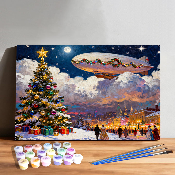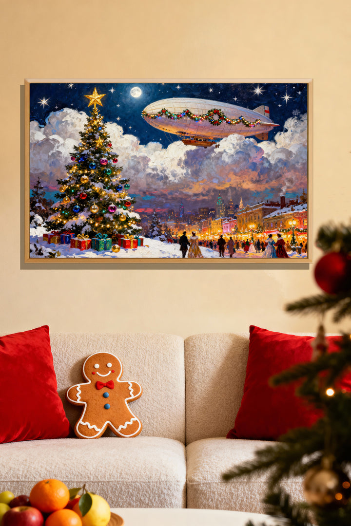 ● 🎈 Festive Airship in the Sky – A whimsical holiday blimp wrapped in garlands.