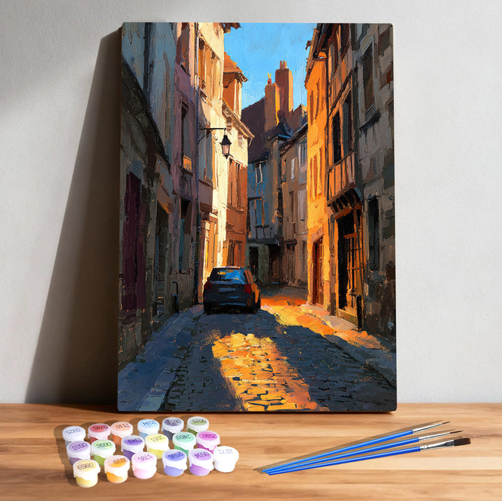 Dijon Old Town France Paint by Numbers | Sunset Medieval Street Art Kit | PaintEasy