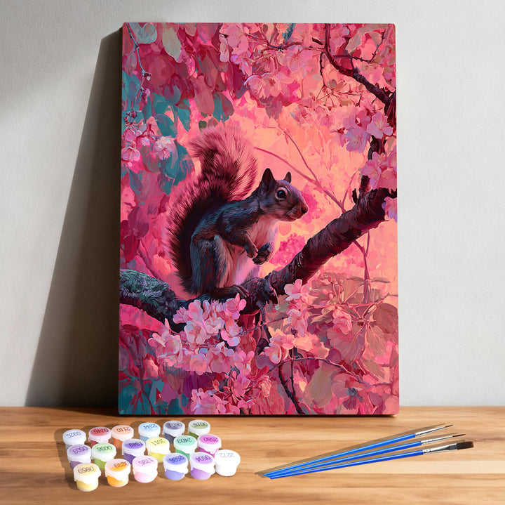Cherry Blossom Squirrel – Kids Paint by Numbers Kit | PaintEasy