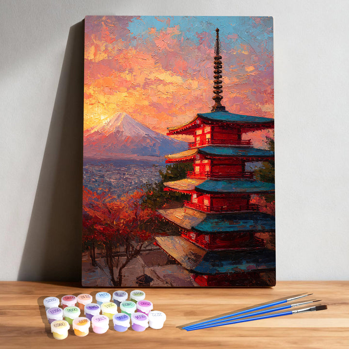 🗻 Chureito Pagoda & Mount Fuji Sunset Paint by Numbers Kit | Japan Scenic View | PaintEasy
