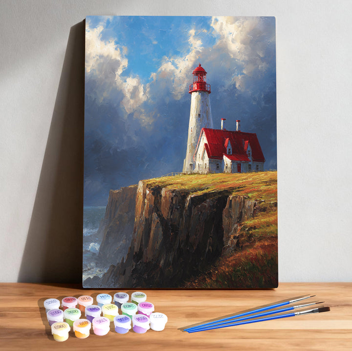 Cliffside Red Roof Lighthouse Paint by Numbers Kit | PaintEasy