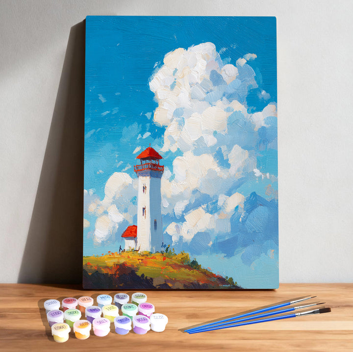 Cloudy Day Lighthouse – Kids Paint by Numbers Kit | PaintEasy