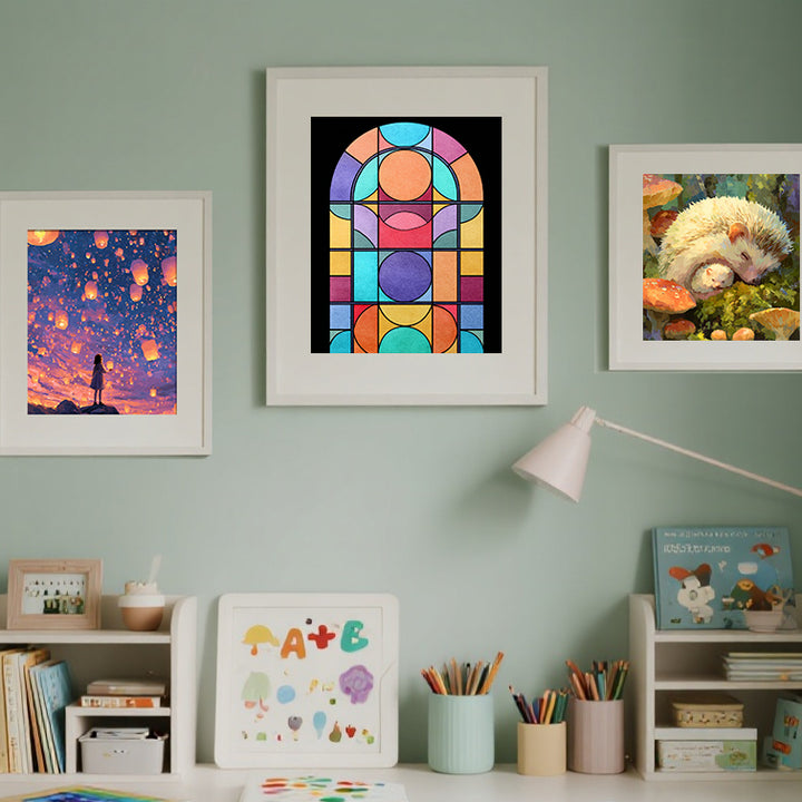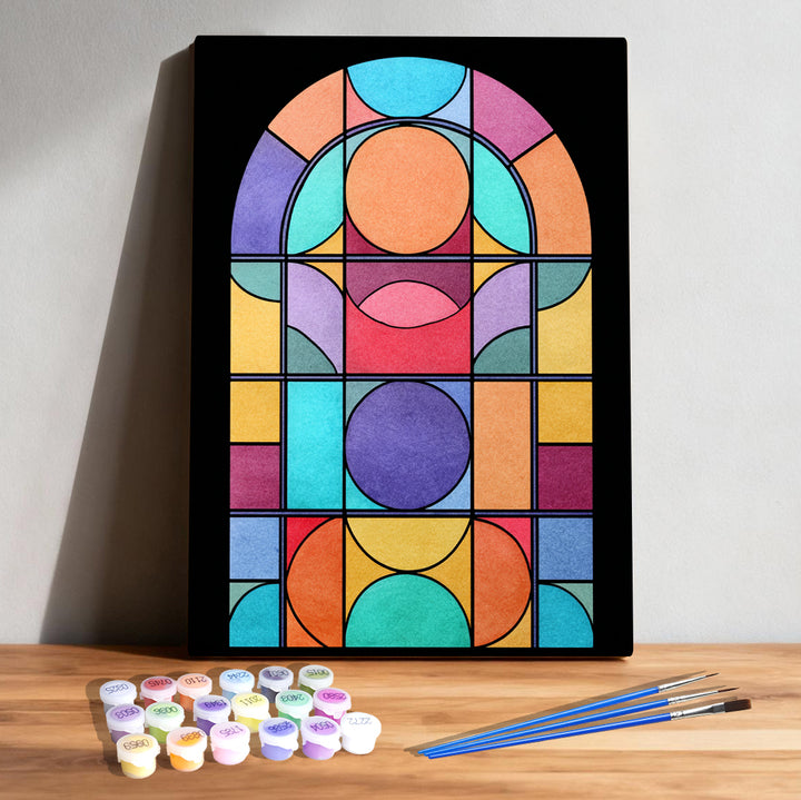 Colorful Geometric Stained Glass Window – Modern Faith Glow & Bright Sacred Shapes Paint by Numbers Kit | PaintEasy