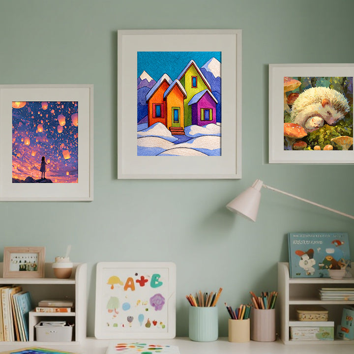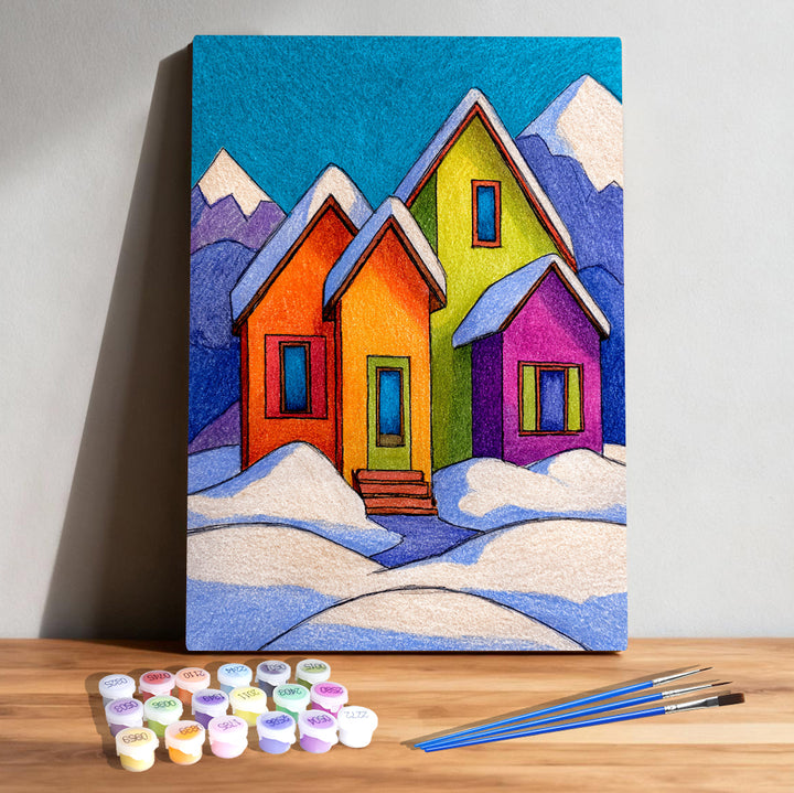 Colorful Snowy Houses Paint by Numbers | Kids Winter Village Art Kit | PaintEasy