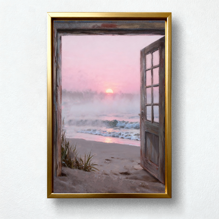 Peaceful Morning Seascape – The sunrise through a rustic doorway.