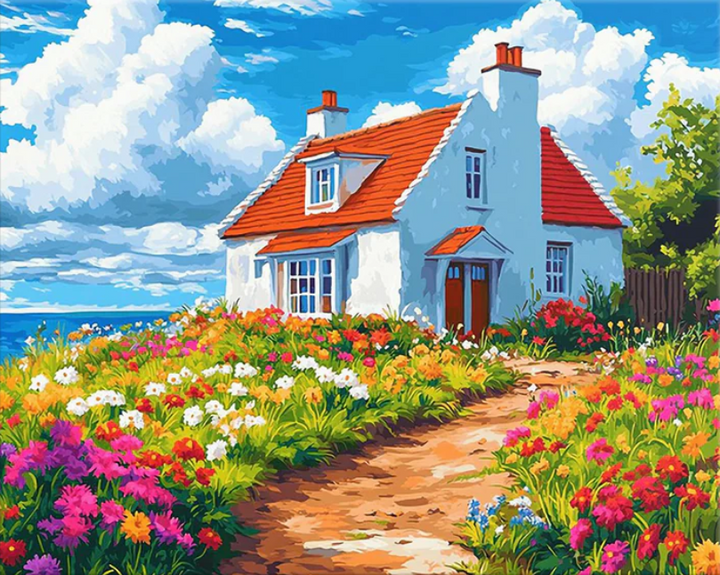 Diamond Painting:A Path Through Wildflowers to a Seaside Haven