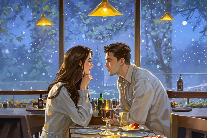 Diamond Painting:Romantic Dinner by the Window on a Winter's Night