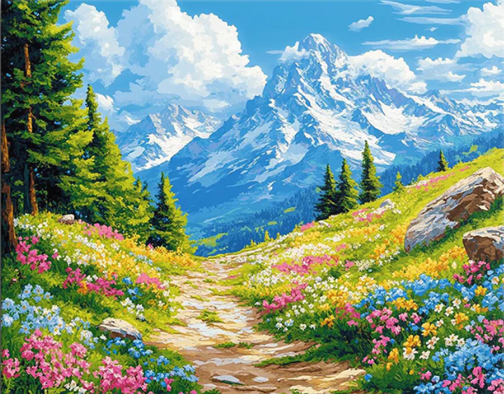 Diamond Painting:Where Mountain Majesty Meets Floral Splendor