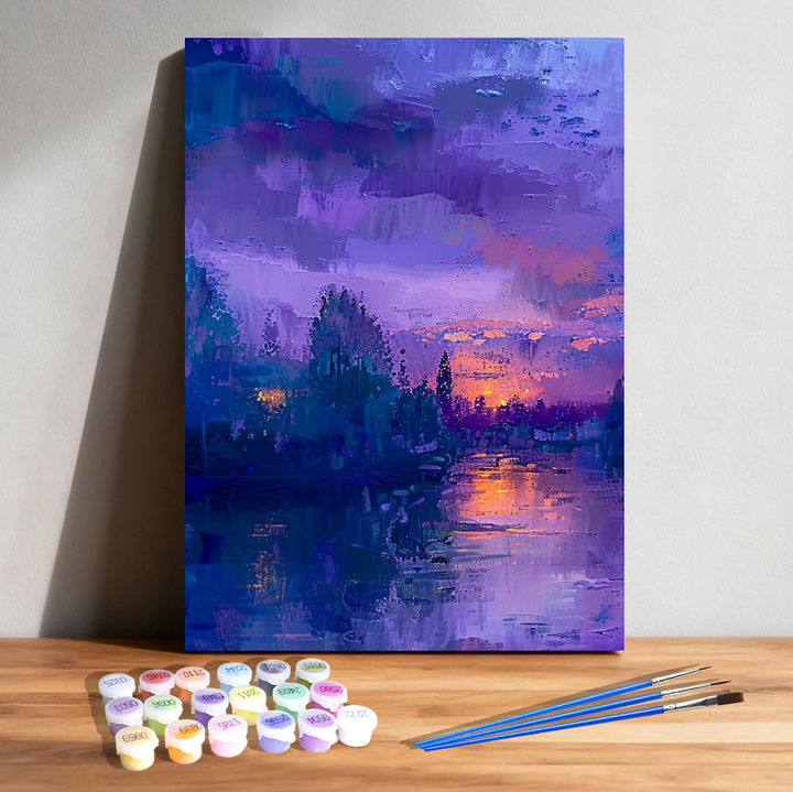 Dreamshore Paint by Numbers | Blue-Purple Twilight River Scene