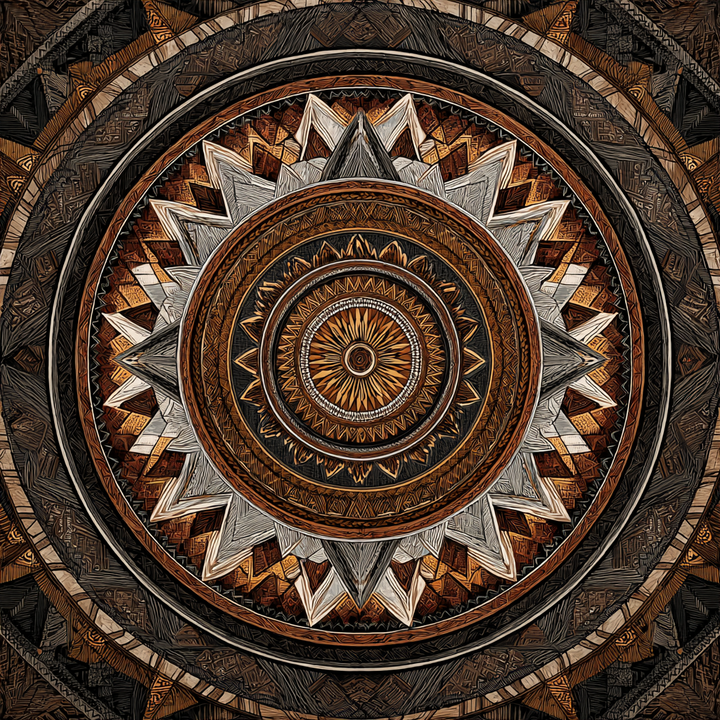a hand-carved symphony of tribal patterns and sacred symmetry.