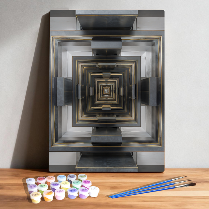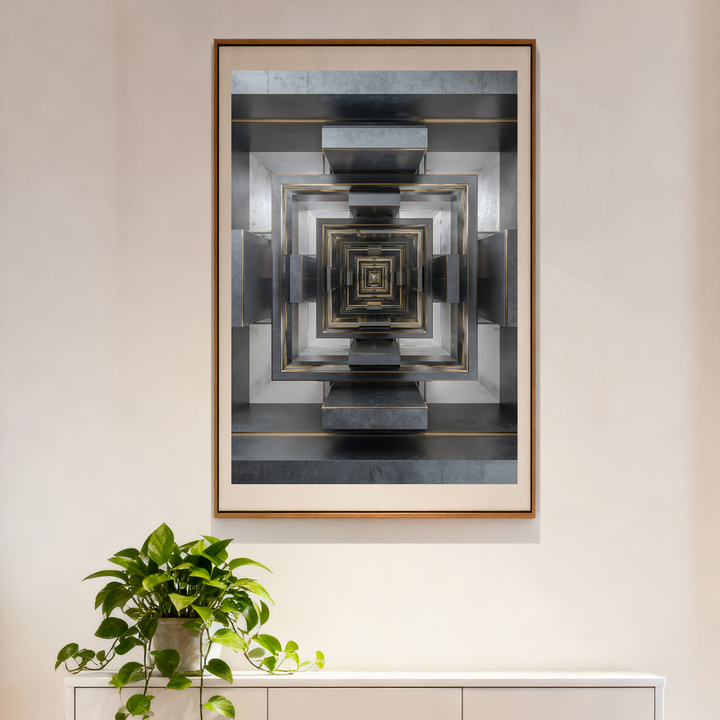 ● 🩶 Metallic Architectural Design – Recursive geometric layers forming hypnotic depth.