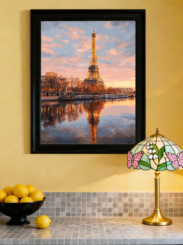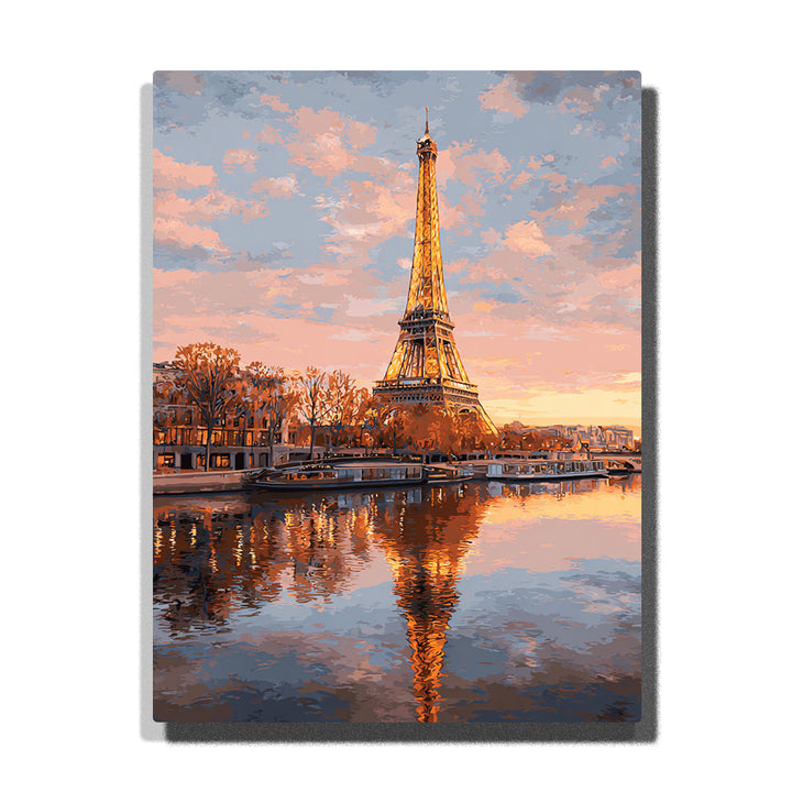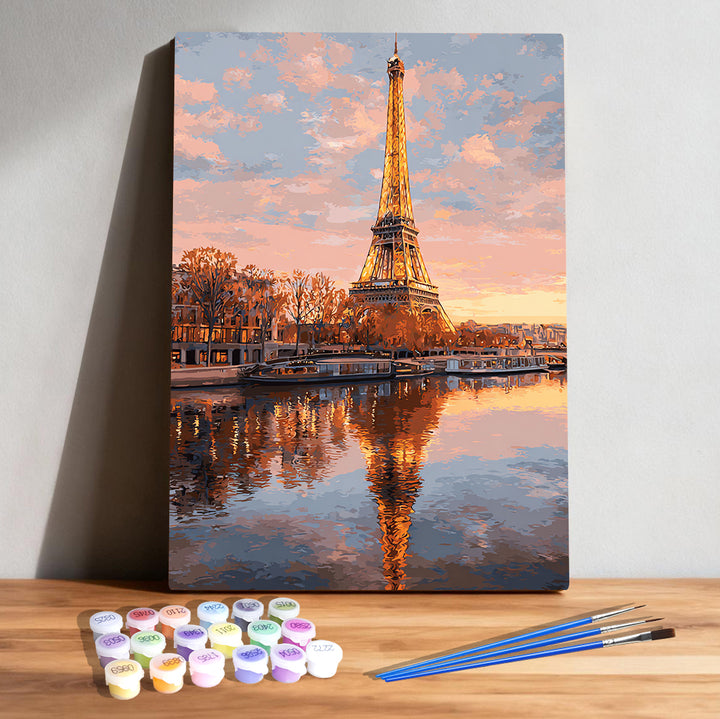 Eiffel Tower Paris France Paint by Numbers | Sunset Seine Reflection Art Kit | PaintEasy