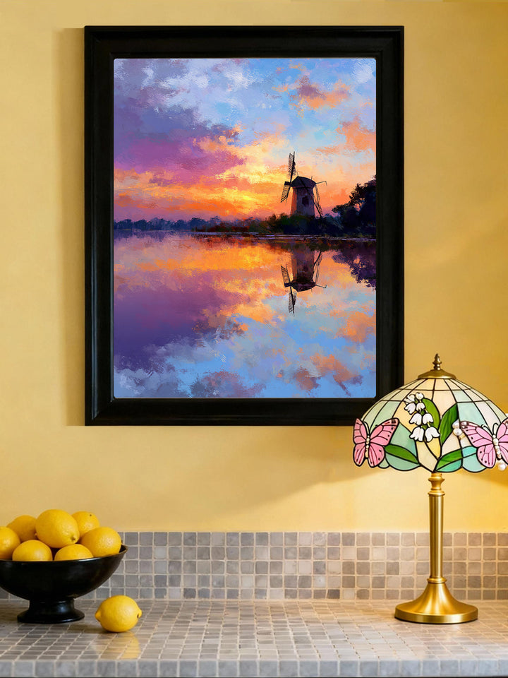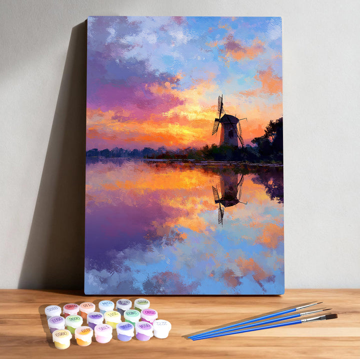 Fiery Sunset Windmill – Netherlands Paint by Numbers Kit | PaintEasy