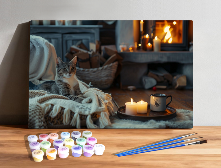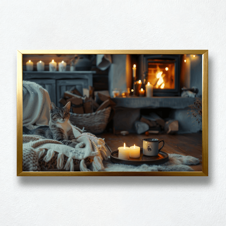 ● 🕯️ Cozy Fireplace Scene – A heartwarming blend of candlelight, blankets, and gentle fur.