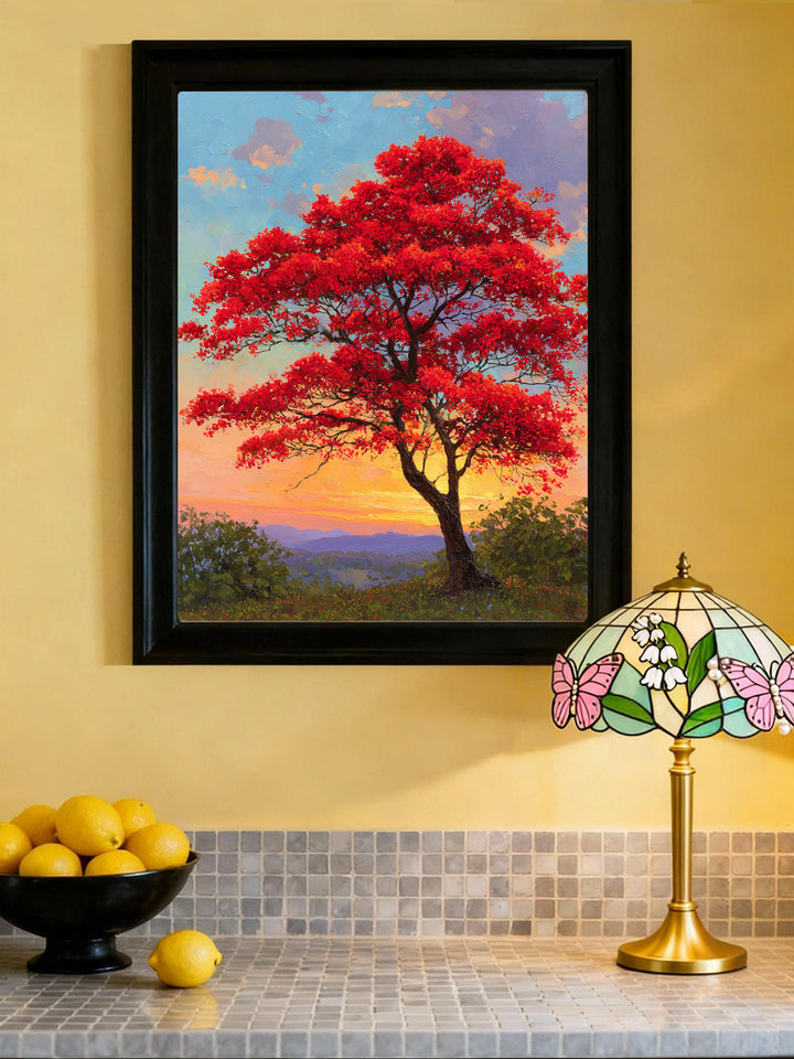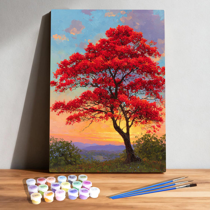 ❤️ Flame Tree Sunset Paint by Numbers Kit | Vibrant Red Canopy Landscape | PaintEasy