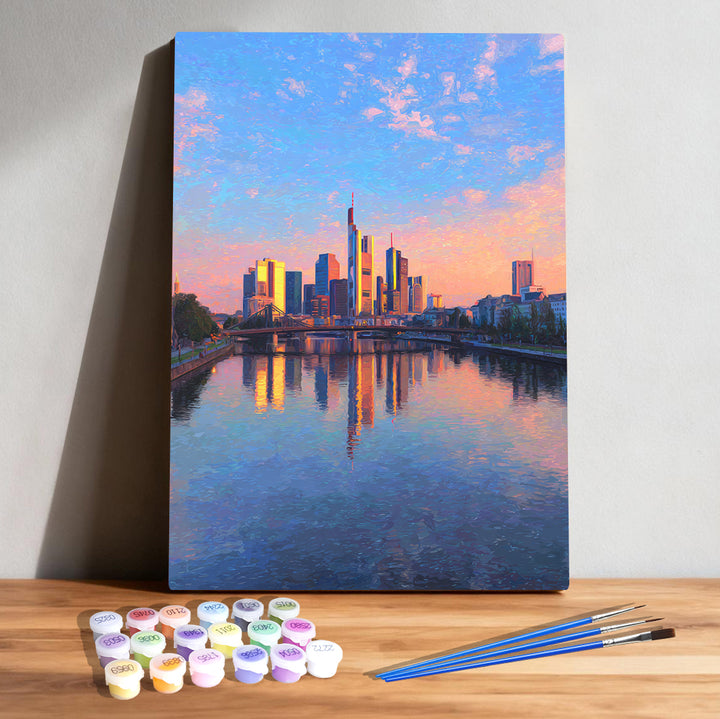 🌆 Frankfurt Skyline Sunset Paint by Numbers | Main River Cityscape Art Kit | PaintEasy