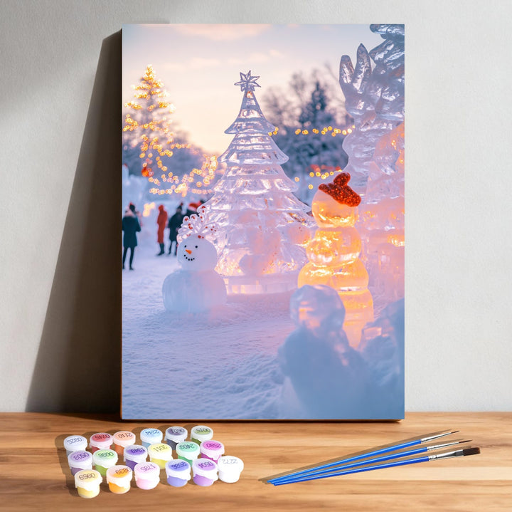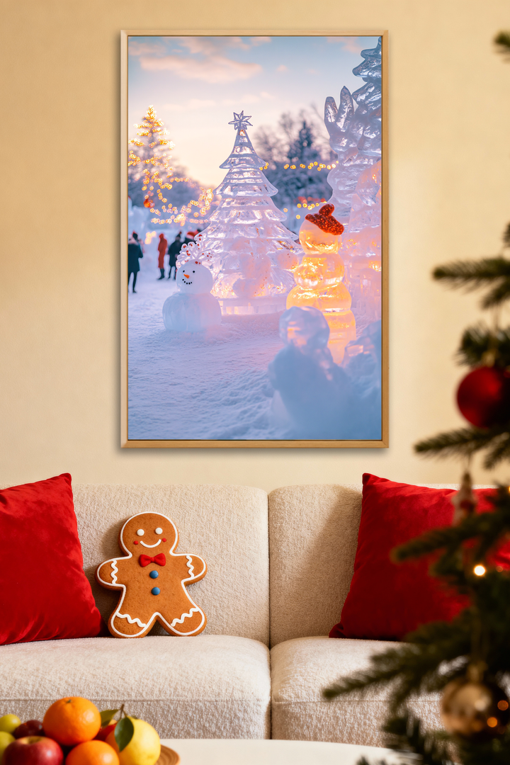 ● ❄️ Dreamy Ice Wonderland Scene – Sparkling snow sculptures under warm lights.