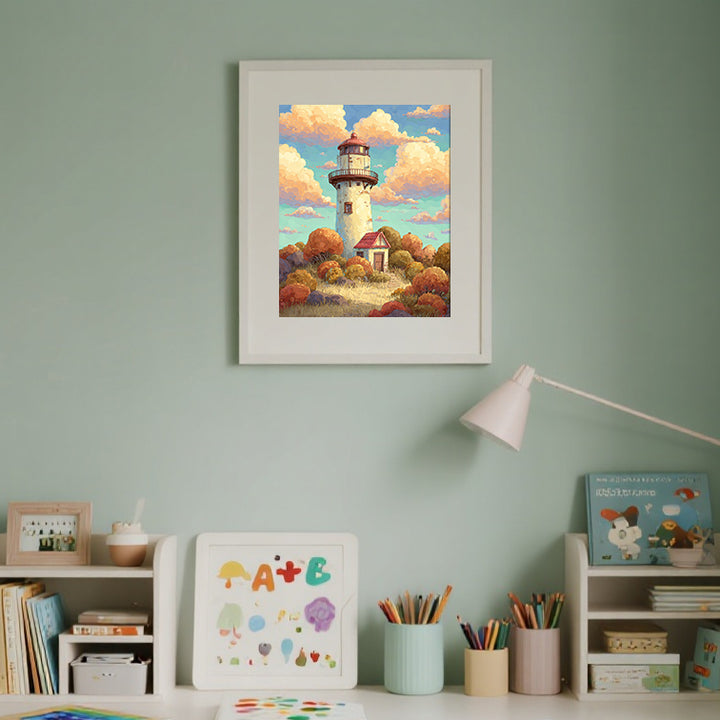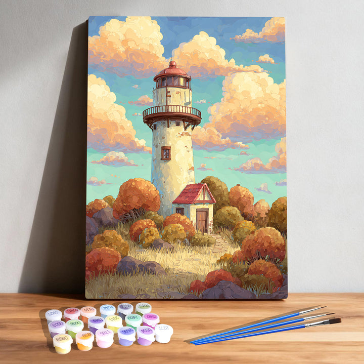 Golden Autumn Lighthouse – Kids Paint by Numbers Kit | PaintEasy