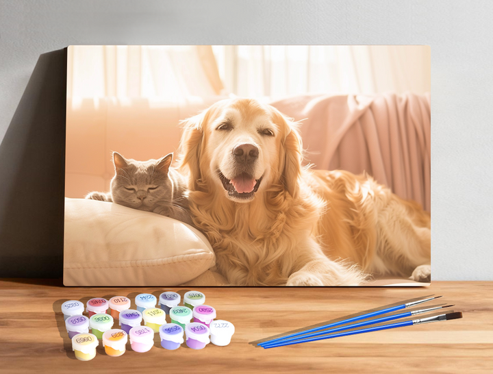Golden Companions Paint by Numbers | Cozy Dog & Cat in Sunlight