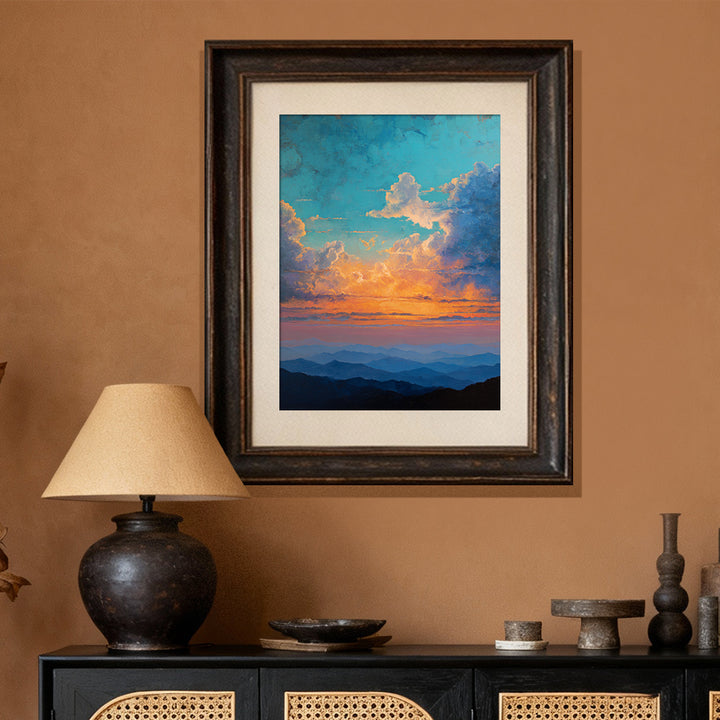 ā— šŸ” Layered Mountain Silhouettes – Misty blues for soothing depth.