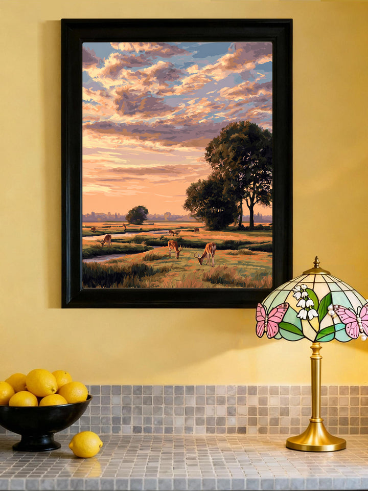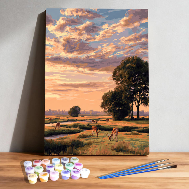 Golden Meadow Deer – Countryside Paint by Numbers Kit | PaintEasy