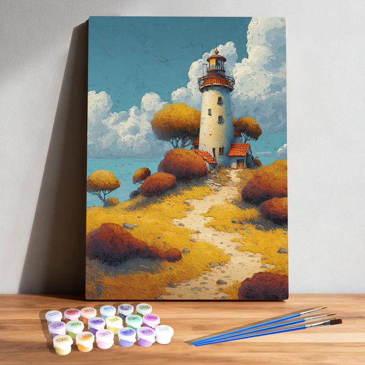 Golden Path Lighthouse Glow – Kids Paint by Numbers Kit | PaintEasy