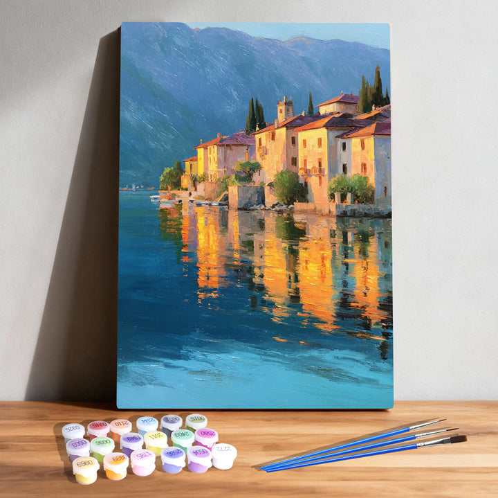 Golden Shores Village – Lake Como Italy Paint by Numbers Kit | PaintEasy