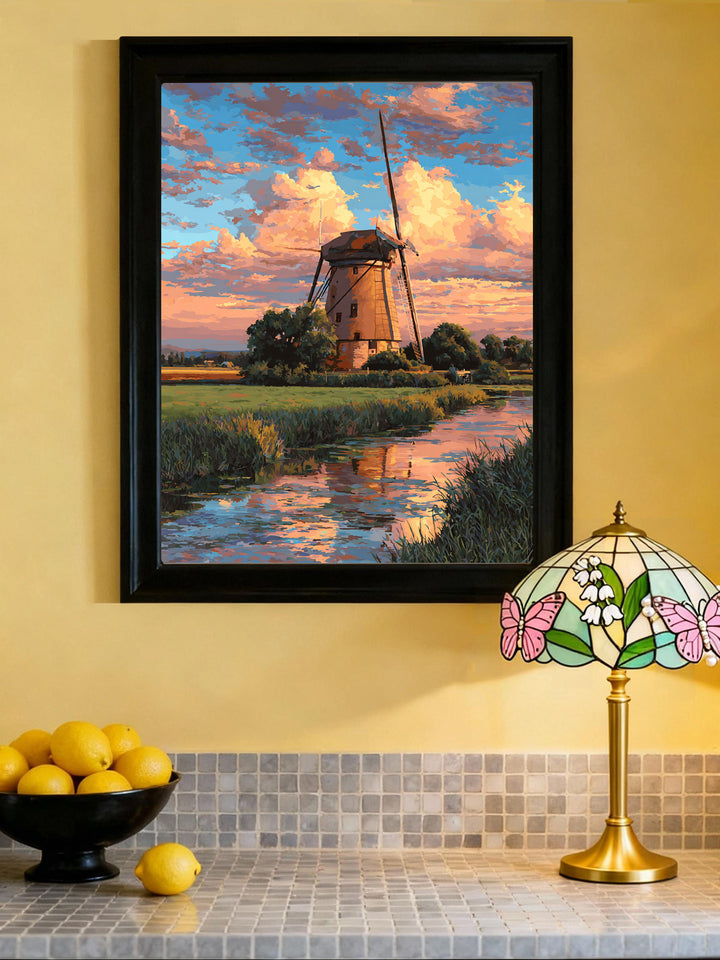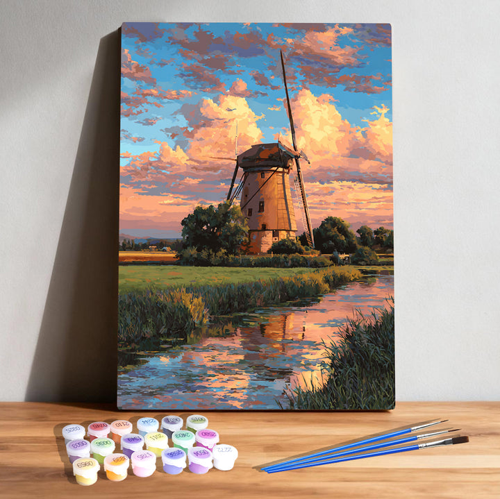 Golden Windmill Sunset – Netherlands Paint by Numbers Kit | PaintEasy
