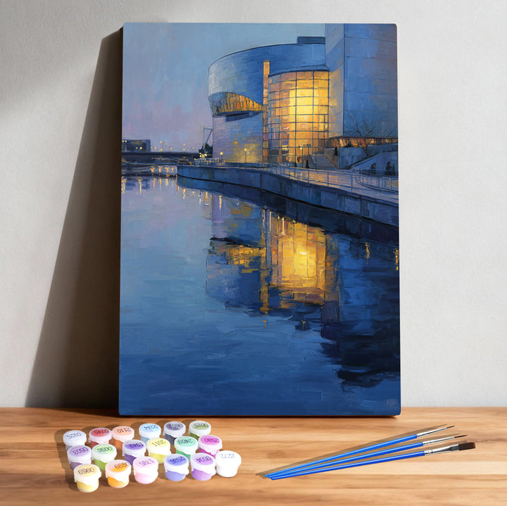 Guggenheim Night Reflections – Bilbao Spain Paint by Numbers Kit | PaintEasy