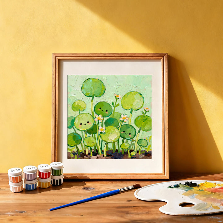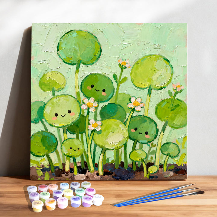 Happy Sprout Meadow – Cute Green Garden Paint by Numbers Kit | PaintEasy