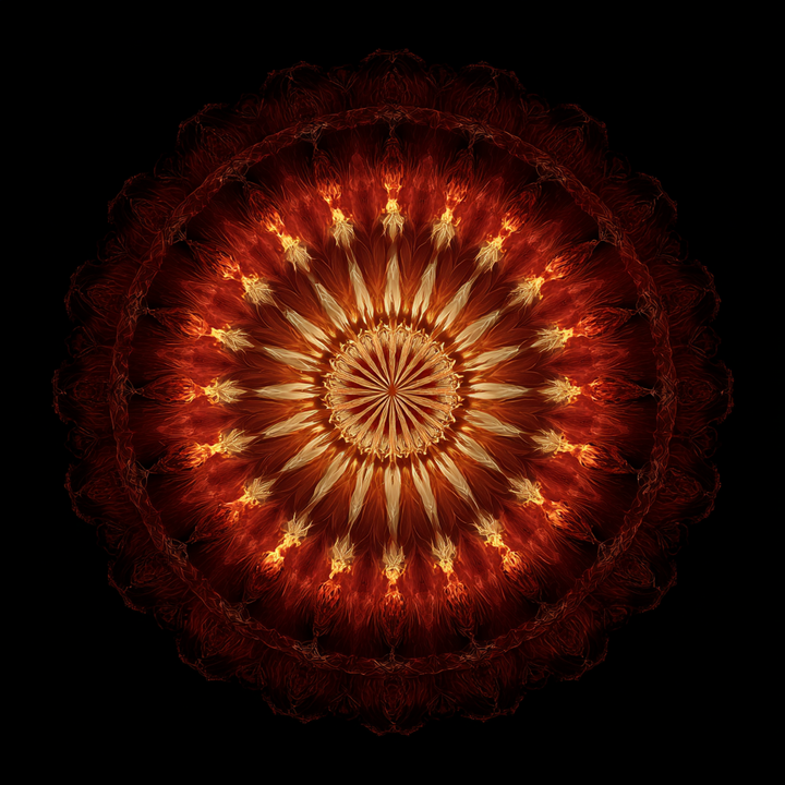 a mandala of radiant gold and crimson flame,